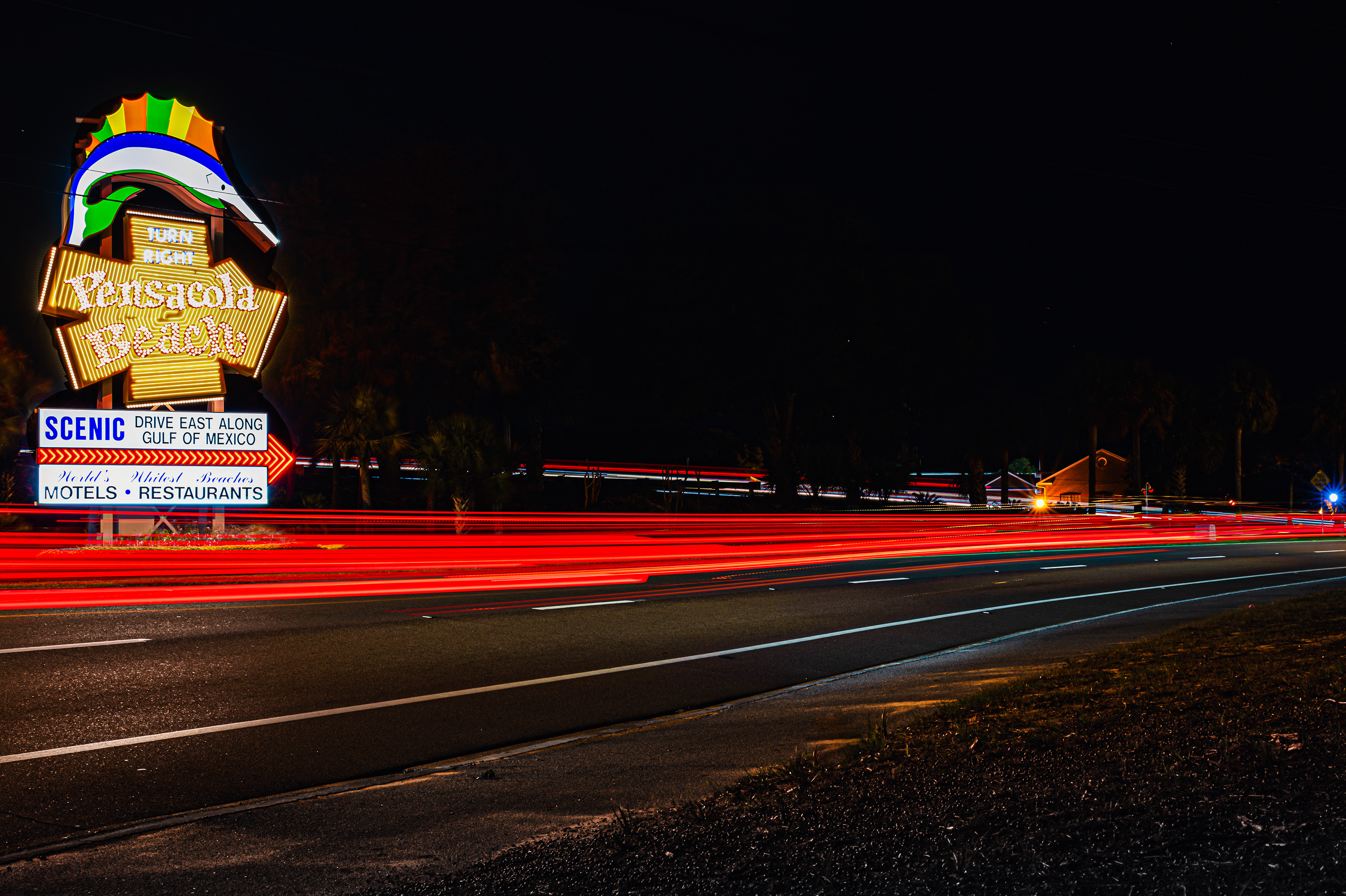 Pensacola Beach Sign at Night - Pensacola Beach, Florida